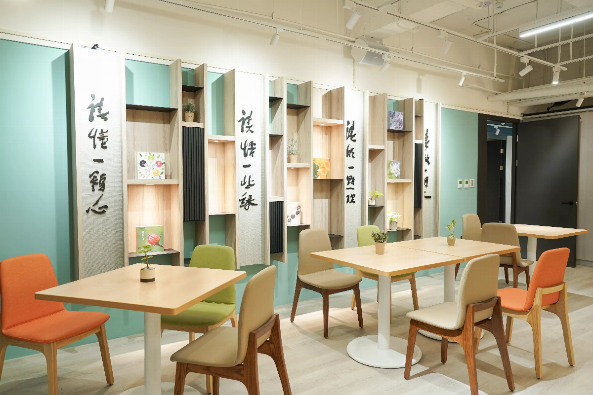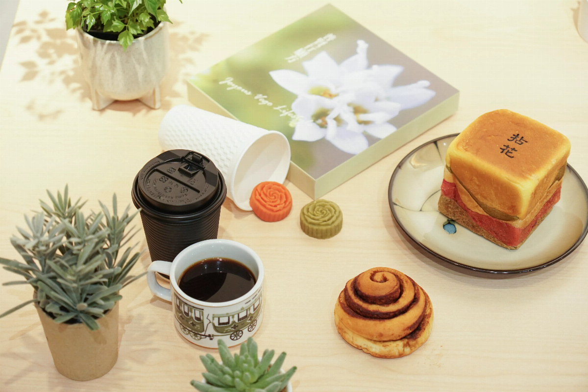 「拈花軒」呼應佛陀在靈山會上拈花微笑,盼人們都能在此空間獲得身心靈放鬆,啜飲一口茶、抿一杯咖啡、品嘗一個福氣肉桂捲,以心印心、參悟禪理。