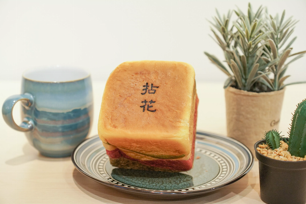 五行吐司的「青、赤、黃、白、黑」對應人體五臟「肝、心、脾、肺、腎」,分別是抹茶、甜菜根、南瓜、牛奶及芝麻口味,食用五色食物有助於保養五臟六腑。