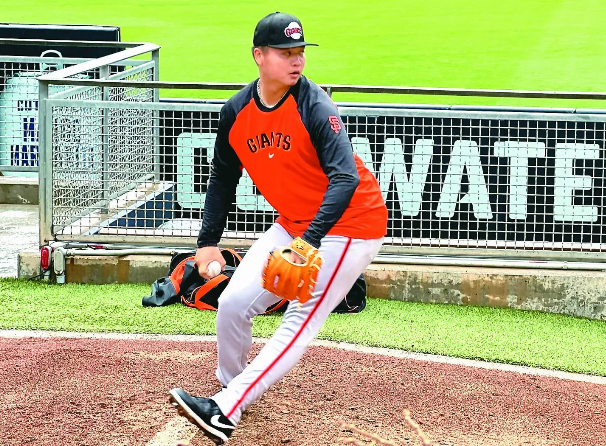 台灣投手鄧愷威沒錯過這波亞洲風潮,圖為他在教士主場的牛棚練投。圖/中央社