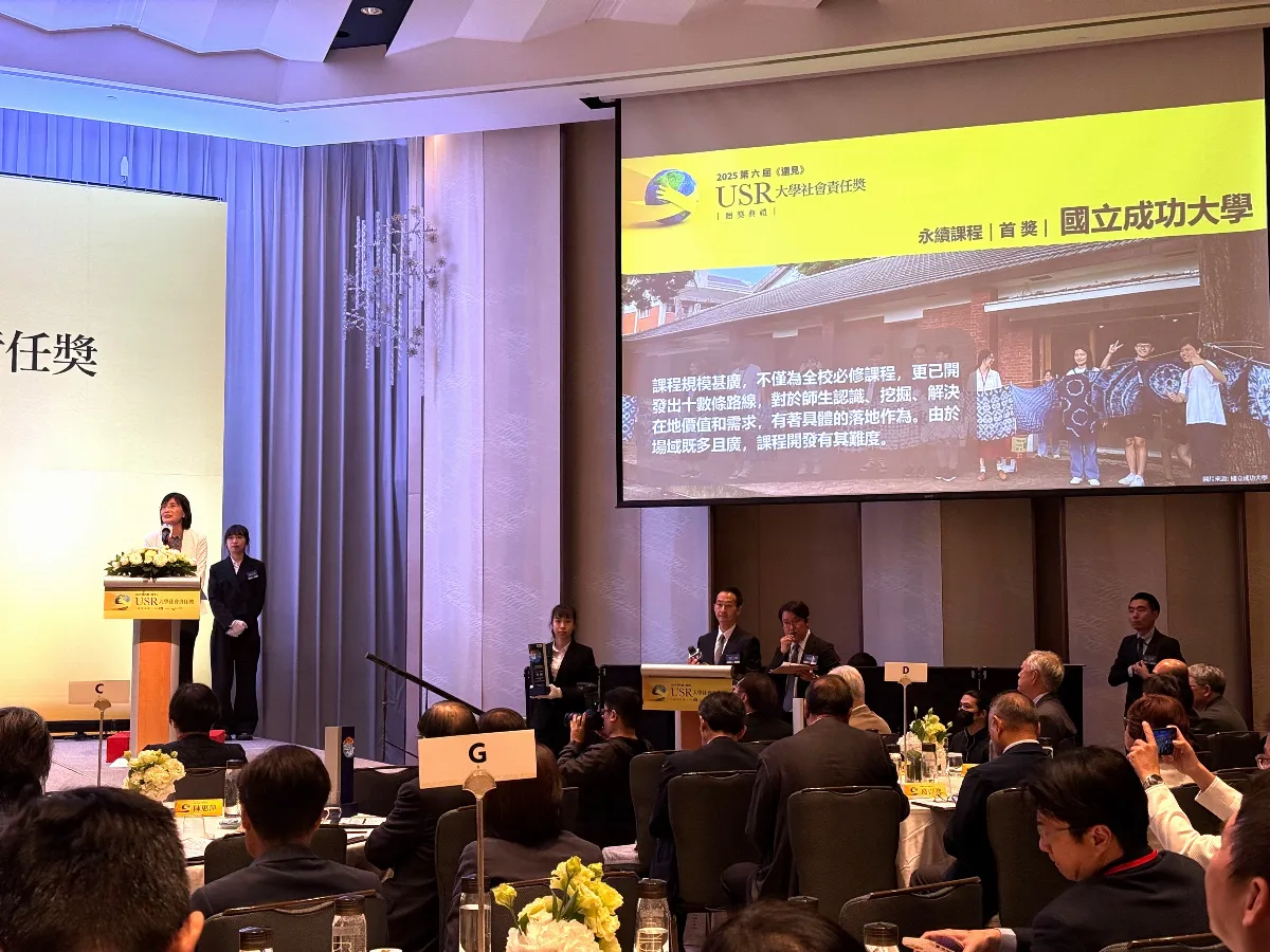 今年新增的「永續課程獎」,成大以「CO做伙:成大踏溯與台南共築知識新大學」拿下首獎,以跨學院78名老師與跨行政單位共推必修學程的龐大資源,整合在地商家120名業師來共同教學,設計出成大校園與大台南地區蝶帶更新的大小尋根路線,讓學子透過走入文化場域追本溯源而產生認同感,可以更自主的以社會關懷和責任視角為專業職志加分。