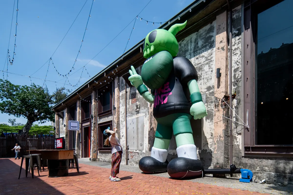延伸《勇者系列動畫》的展覽內容,「漫畫便當店」外倉庫等高的充氣魔王帶觀眾先睹為快。圖/高市文化局提供