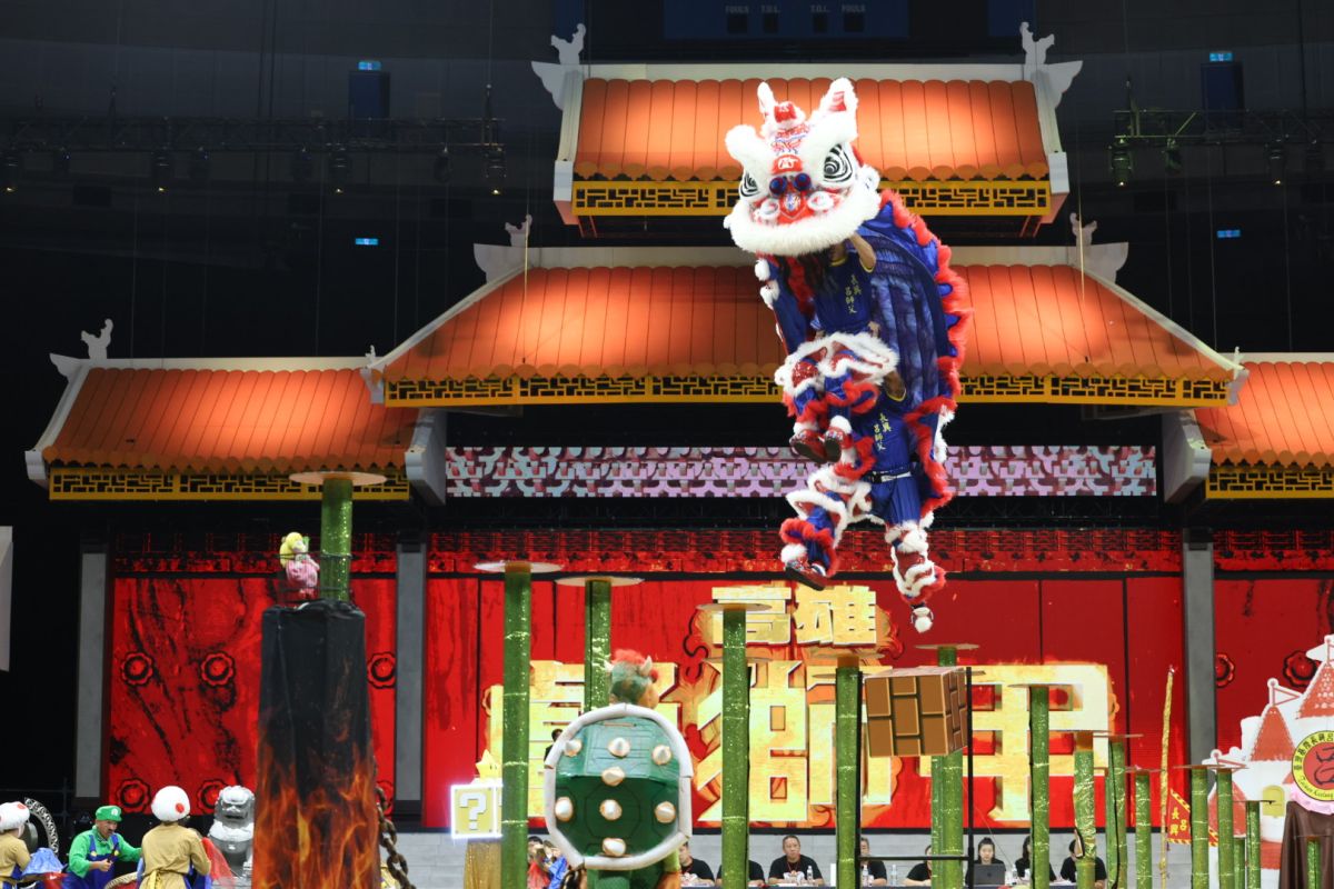 另外,獅隊「空中躍」部分於高雄巨蛋登場,挑戰陸樁賽程,現場也有左營洲仔清水宮帶來〈十八衙役武術藝陣〉及世界舞龍冠軍王功兩廣國術龍獅戰鼓團的炫技演出,要讓觀眾一睹藝陣的趣味性。