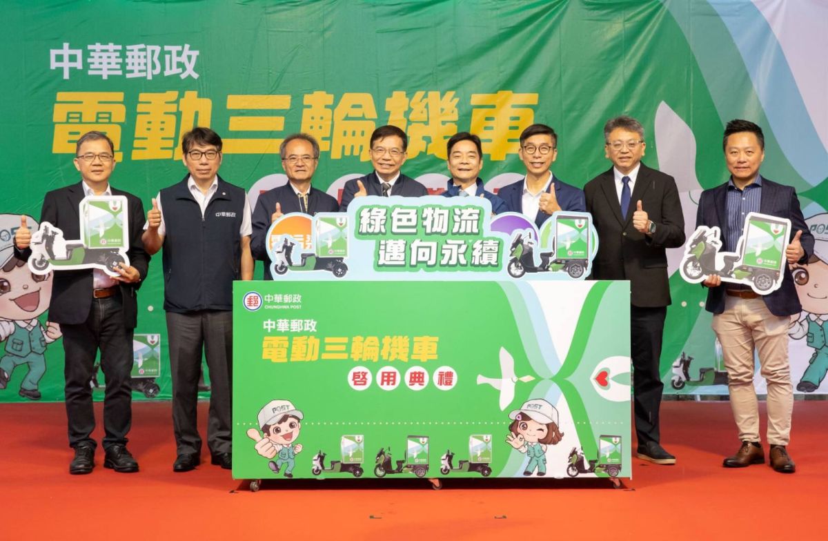 啟用典禮中展示首批電動三輪機車,並由郵務士代表騎乘亮相,象徵中華郵政邁入綠色物流與智慧運輸的新世代。中華郵政董事長王國材表示,為響應政府推動2050淨零轉型政策,從107年1月15日起率先推動郵務機車電動化,目前已有3630輛電動機車(46.1%)執行投遞作業,預期在2040年前即可達成全面採用電動機車的政策目標。
