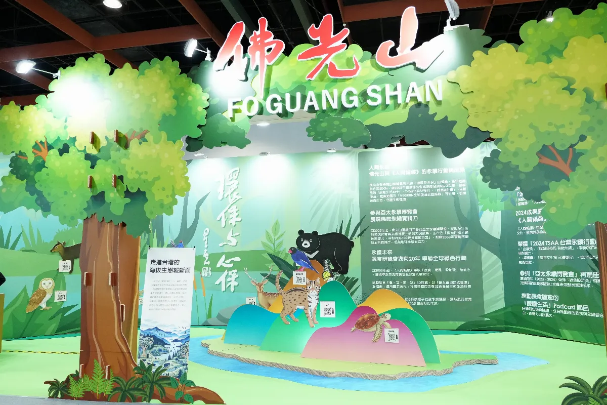 《人間福報》社長妙熙法師表示,展位以看見台灣為構想,展位中間的台灣立體模型,上面有海岸、中央、雪山、玉山和阿里山五座山脈,周邊挑選出12種台灣特有動物,民眾可以掃描QR Code,閱讀相關新聞,了解各種動物的棲息環境和生活方式等。