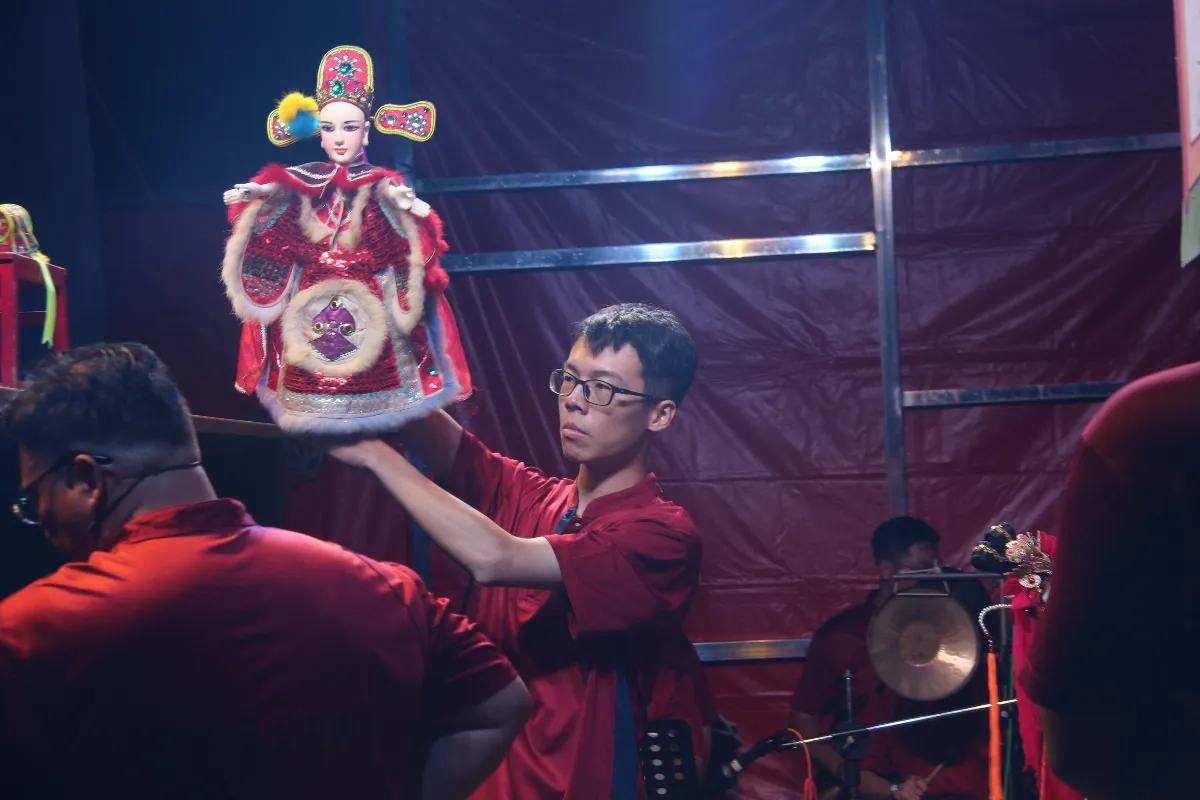 昇平五洲園承襲雲林縣政府登錄傳統表演藝術保存者林宗男的家傳技藝,家傳三代的精彩演出令人期待。中為結業習藝生-林瑞騰。圖/傳藝中心提供