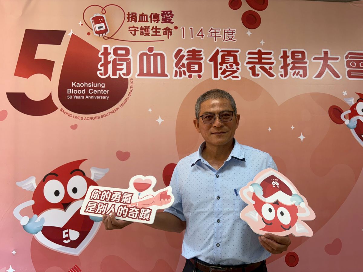 高雄捐血中心還表揚林文泰長期擔任屏東捐血站義工,自己籌畫捐血活動,邀同事及不同單位的朋友一起來捐血做公益。