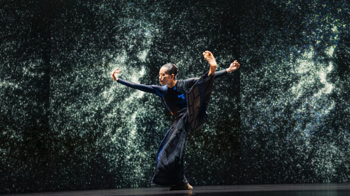 雲門舞集《波》,以科技與AI工具讀取舞者的身體,將肌肉、呼吸與神經傳遞的電波化為數據,與電腦程式相互融合,詮釋出波動的感受。圖/雲門舞集提供、李佳曄攝影