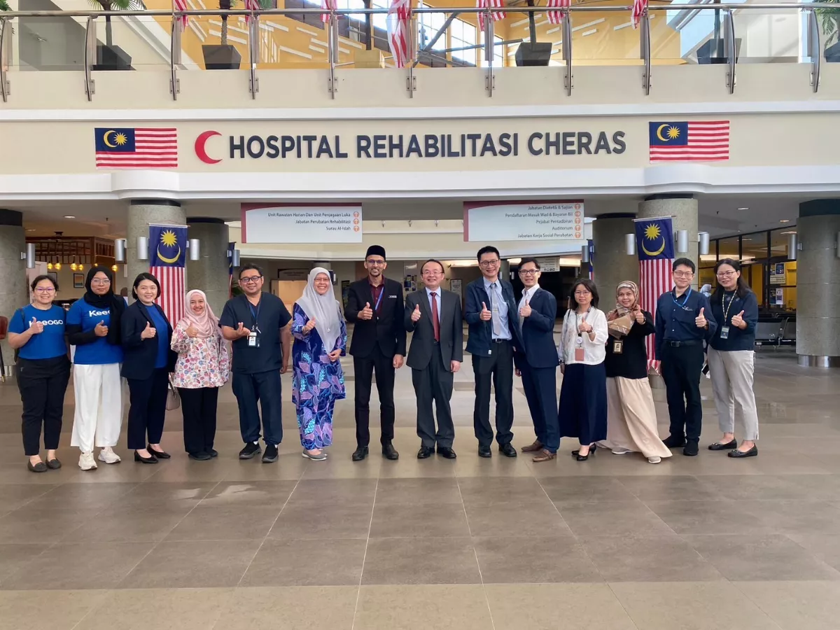 長庚醫院復健專業團隊於今年8月23日由行政中心執行長游進邦率領,包括林口長庚醫院復健部及AI中心副主任裴育晟、長庚大學智慧醫創學程助理教授黃建嘉,以及緯創醫學科技及富伯生醫科技等台灣廠商,一同前往吉隆坡蕉賴復健醫院。