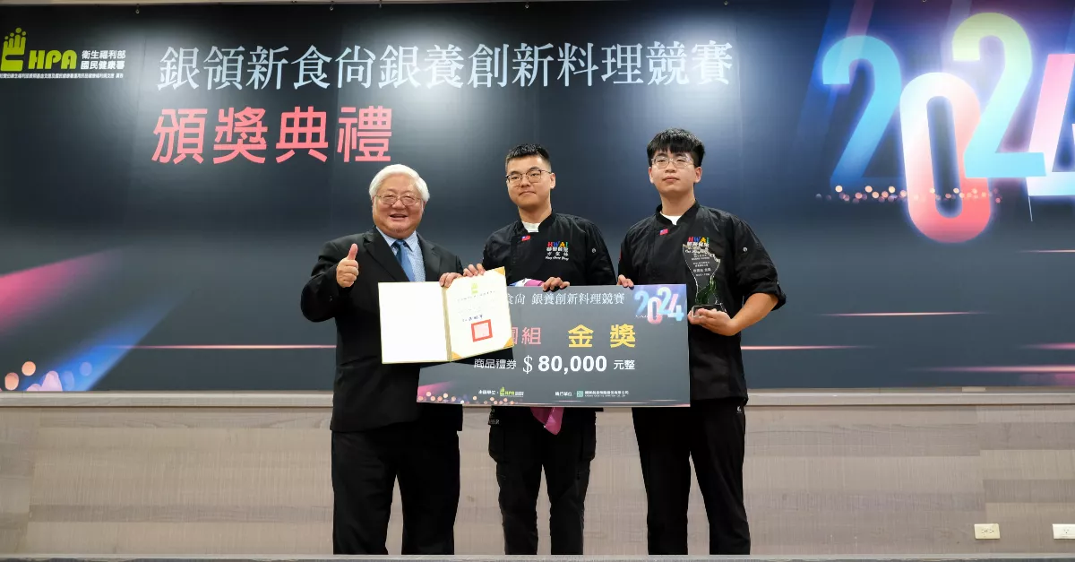 校園組/金獎/銀保膳存隊/中華醫事科技大學餐旅管理系。頒獎人/國健署署長吳昭軍。圖/國健署提供